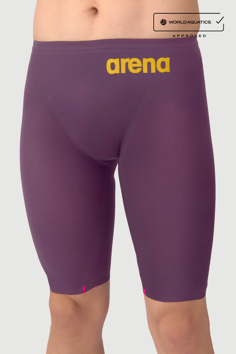 Arena's top racing model AQUAFORCE STORM MF. This model is certified by WORLD AQUATICS for competition in official swim meets. With arena's first spiral structure, it supports gyration in the hip joints while kicking. Its entire body is made of one part with no accents, to balance movability with lightness. These two features help maintain mobility in the water.