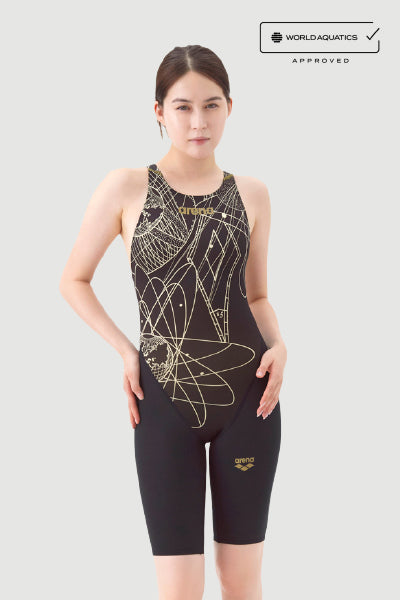 The AQUA ADVANCED series is recommended for competitive swimmers. This model is WORLD AQUATICS approved for use in official swim meets. It's a competitive model made with knit materials designed for ease of swimming, with polyurethane wrapping across the body and AQUA XTREME. Swimmers who are accustomed to swim meets and want to take on time challenges next are encouraged to try this model! Boldly featuring the graphic from 'Birth of Water,' one of the design themes for the 25FW season