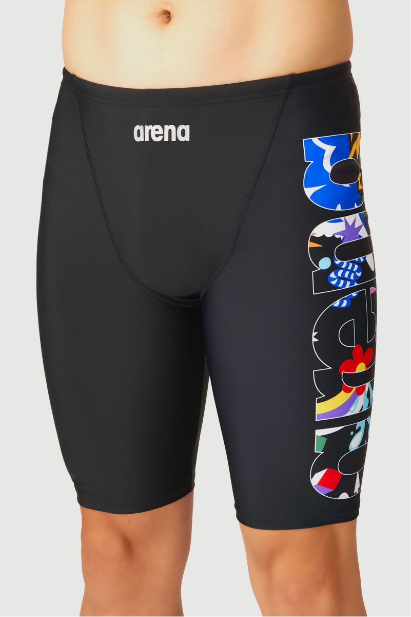 The training swimwear is recommended for swimmers who train frequently for competition. Its design features the season theme of VIBRANT WEATHER. The colourful graphics depict a weather motif of wind, rain, lightning, and sun in vivid POP colors.